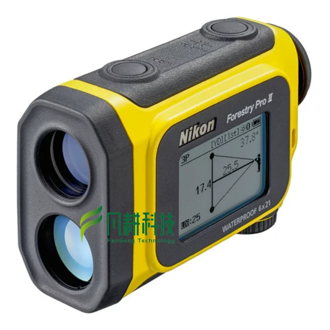 Forestry Pro II 激光测距望远镜是一款可以测量实际距离、水平距离、高度、角度和垂直间隔(两个目标之间的高度差)等参数的仪器,采用了背光设计,即使在树林等较为黑暗的情况下,也可以轻松查看显示内容。另外还采用了日志功能,可储存250个测量结果。在外部显示屏上即可查看这些日志,使用更为方便。